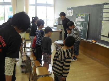 その後、日直さんの出欠席調べです。自分の体調と、今日の帰り方(お迎えか学童に行くか)などをお知らせしました。そしてみんなで元気な朝のあいさつです。今日も元気に頑張ってくださいね。