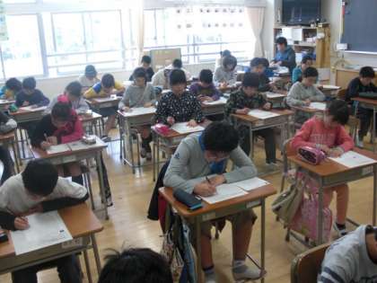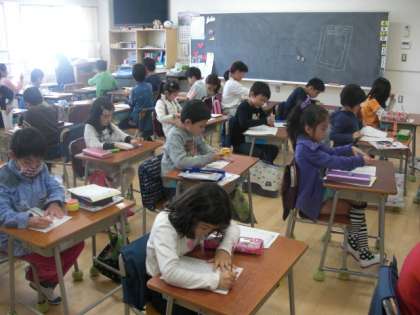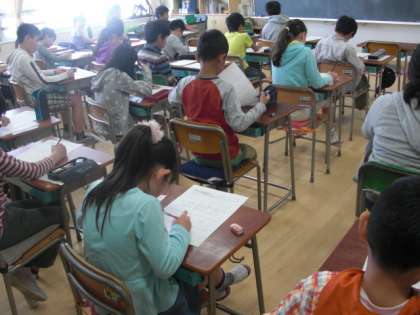 前日の宿題として、算数の問題を出し、