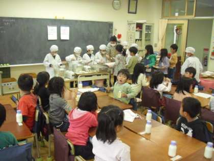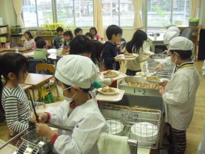 4時間目の授業が終わり、給食の準備開始時間です。1年生の教室でも給食当番が配膳の支度を整え、皆が並び始めました。上手に配膳できるかな・・・・今日は焼きそばでしたが、「学校の焼きそばは辛いのかな?」と食べる前には、ちょっぴり不安げな質問も出ていました。芦花小学校の給食は食べてみてどうでしたか?芦花小学校の給食は、本当にいつもとても美味しいですよ・・・。みんなもたくさん味わってくださいね。