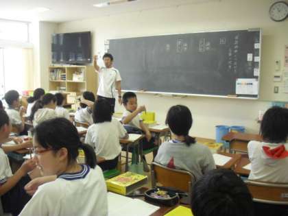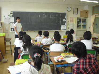 6年生の教室では、言葉の世界を広げる学習です。「左」をどう説明したらみんなに伝わるだろう・・・班のみんなで考え、順番に発表します。友だちの考えを聞きあって「なるほど・・」ではトマトは?「赤くてへたがついていて・・・」「その通りに描くとイチゴになってしまう・・」「う〜ん・・・」と学習では悩む場面がとても大事ですね。国語辞典にはどう説明されているのでしょうか。確かめます。これからも言葉の世界をひろげて活用していきましょう。