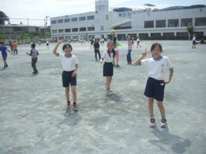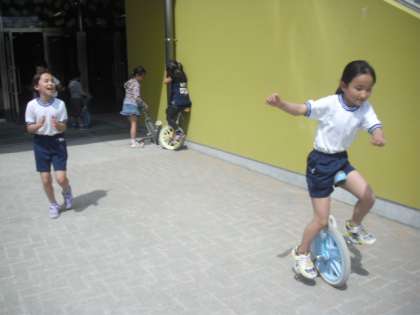 気持ちのよいほど晴れています。子ども達は外で一輪車の練習をしたり、ドッジボール、鬼遊びなどをして今日も元気よく遊んでいます。