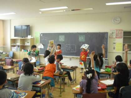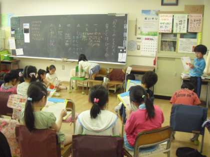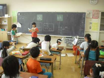 2年生の教室では音読の発表をグループごとに行っていました。グループの発表を聞きながら、声の大きさや間の取り方などについてみんなで確認したり気が付いたことを伝え合ったりと、学びを深めていました。