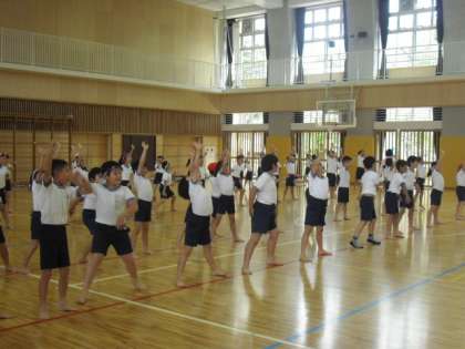 体育館では4年生のソーラン節の練習です。これは中学生もみんな踊れます。世田谷文学館前で開かれる地域の下町会まつりでも披露する予定です。街のみんなが知っていて一緒に踊れるのは、何だか素敵ですね。