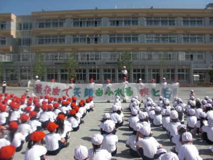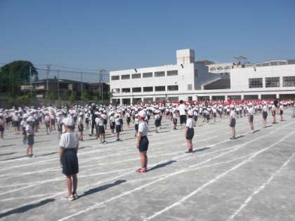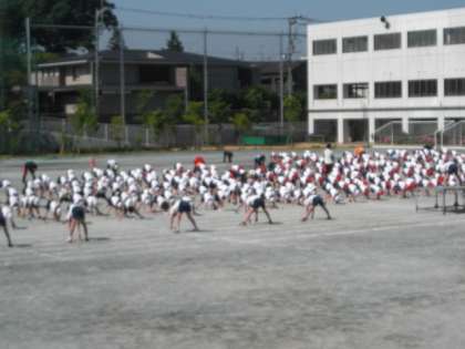体操隊形への移動も含めて、全校で取り組みました。