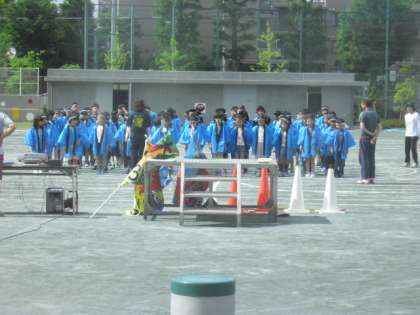 おはようございます。朝から子ども達も明日の運動会に向け、意欲満々です。早速朝からリハーサルも開始しました。まずは先生のお話から・・・・