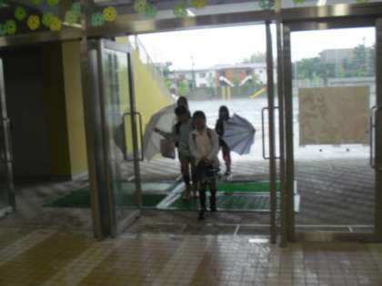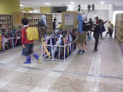今日は傘をさしての登校・・・靴箱にも長靴が並んでいます。「苦手なの・・」と傘を閉じてくるくると巻く作業に悪戦苦闘している1年生が・・・「こうやってごらんと」と少しだけ手助けして続きを手渡しました。大丈夫・・何度も繰り返しているうちにきっとできるようになります・・・