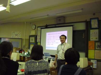 今日の放課後は先生たちの研究会です。今日のテーマは「食育」でべジレンジャーを2年生に派遣してくださった東京農業大学の古庄 律先生を講師にお招きしています。