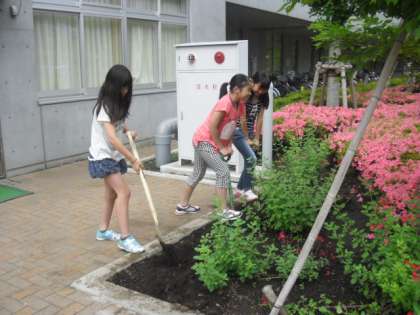 今日もわんちゃん達のお出迎えをうけて子どもたちが元気に登校してきました。高学年の児童が委員会活動として、放送室では朝の放送に、花壇では土を耕す作業に取り組んでいます。いつもありがとう!