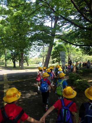 電車に乗って1年生は府中の森公園に到着しました。大行列での移動でしたがみんなで安全にたどりつきました。