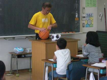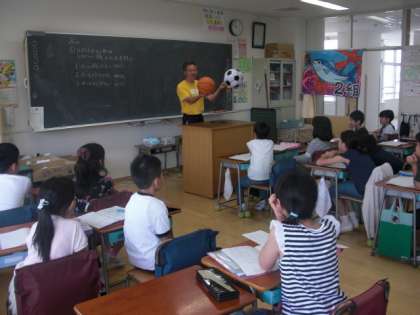 使って、バスケットボールから、ひとまわり大きなビーチボールに