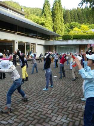 おはようございます。昨夜の雨も上がり、朝はビレジ前の広場でラジオ体操をしました。今日は予定通り行動できそうです。