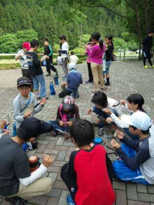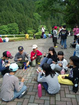 焼きたてのます、命をいただくことを感じながら、美味しくみんなで味わいました。