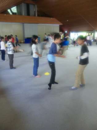 レク係を中心に村の会堂に集まって、チーム対抗ゲーム大会をしました。楽しいゲームにハッスルしていました。