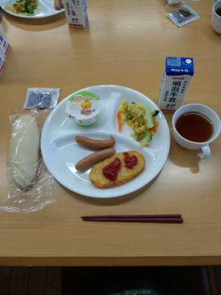 ふじやまビレジでの最後の食事です。配膳にもだいぶなれ、スムーズに進むようになりました。