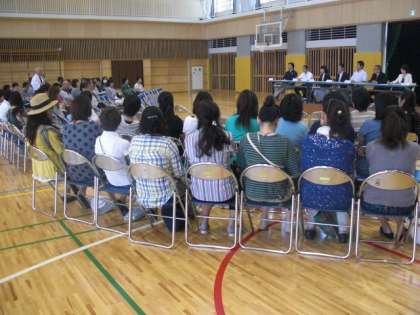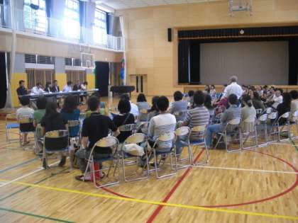意見交換会では、パネラーの方々から芦花小学校と芦花中学校の