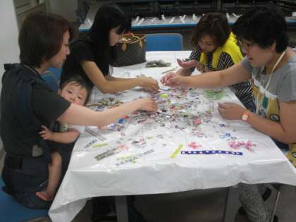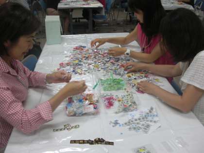 とても細かく、たいへんな作業ですが、テーブルを囲んで和気藹々と
