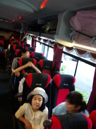 ひかり学級の4・5年生が区内の15校のお友達と河口湖移動教室に出かけました。5号車は明正小、芦花小、松沢小のお友達が乗っています。今高速に乗り、河口湖をめざして進んでいます。