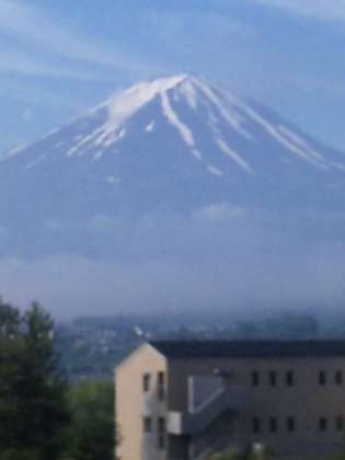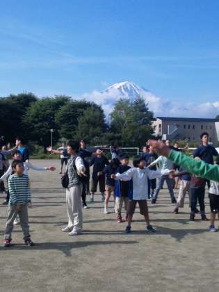 富士山をバックに園庭でラジオ体操をして、今日一日のスタートを切りました。