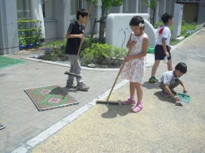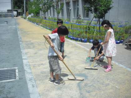 はいてもはいても砂がまってくる昇降口や階段・・・日々主事さん達も何度も掃除をしてくれていますが、今日はちびっこお掃除隊が参上し、みんなが通る道の砂を集めてくれていました。自分達にできることを考え、行動に移す芦花小の子ども達・・・。嬉しいですね。どうもありがとう。