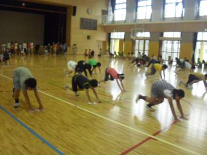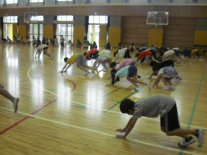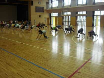 体育館での音楽朝会の後、今日も6年生が床のぞうきんがけをしてくれました。今日は小雨の影響で朝から湿気が多く、なかなか前に進まないところもありましたが、いつものように完了!その活動を見ていた1年生が、「6年生がやってくれていたんだ・・」と驚いていましたよ。6年生のお兄さん、お姉さん、いつもありがとう!