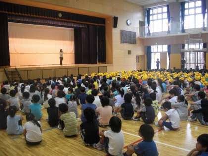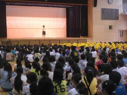 次に、ドッジボール大会で優秀な成績を修めた子どもたちの紹介をしました。