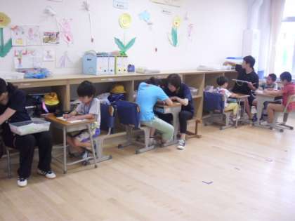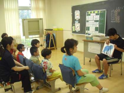 グループ別の国語の学習です。あいさつをして、音楽に合わせて絵本をみてから、それぞれの課題別プリントに挑戦〜