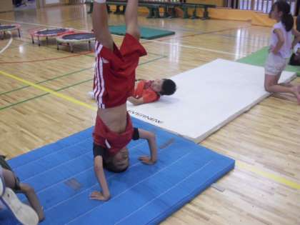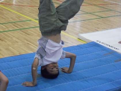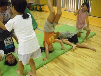 3点倒立にも挑戦〜うまくバランスをとって・・・すごいすごい〜