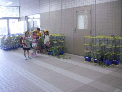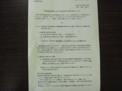 台風8号のスピードが早まっているようです。接近前の今夜は雨風が強まるとのこと・・・先ほどはポツリポツリと雨も落ちてきました。学校で大事に育てていたアサガオなどもピロティなどに緊急避難させました。本日は明日の対応についてのプリントを持たせ帰宅させますので、ご確認ください。