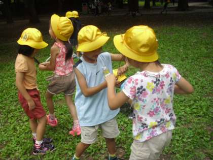 1年生が生活科の学習で、夏の蘆花公園の様子を観察しに