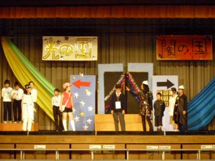 人の優しさや悲しさ、そして楽しさを5年生が演じています。その役になりきるのがポイントだそうです。笑いあり、涙ありを5年生が上手に演じます。