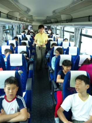 宿舎の玄関に集合し、いよいよ出発です。これからいろは坂を通り、華厳の滝に向かいます。子供達は元気です。