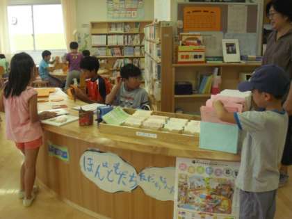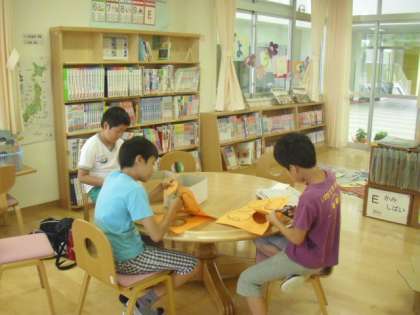 夏季休業中にも学校図書館のほんの貸出日があります。今日は貸出日です。水泳の合間の時間を活用して、読書をしたり借りる本を選んだり図書室で過ごしています。図書委員の児童が2学期に読書活動で使う用紙の準備をこつこつと進めてくれていましたよ。どうもありがとう!