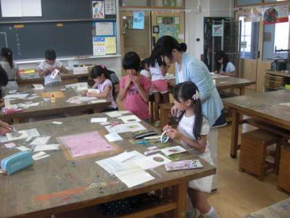 午後は、3,4年生の「押し花グリーティングカード教室」です。