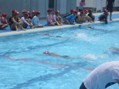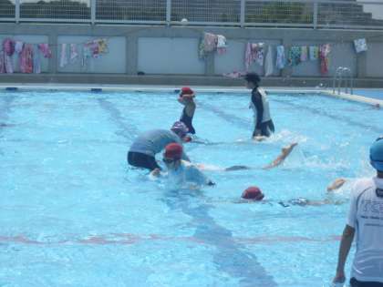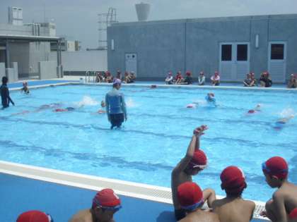 2年生も、水野中で気持ち良さそうに泳いでいます。ふし浮きで体を伸ばし、長く浮きながらバタ足で進みます。体の力を上手に加減しながら浮き、進む児童が増えてきましたよ。