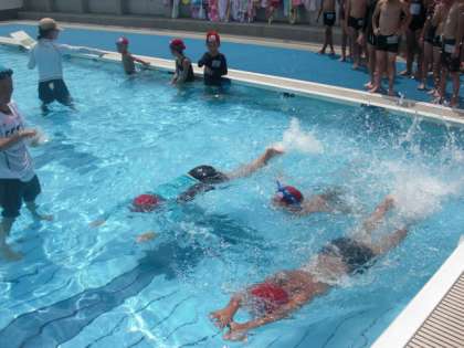 顔をつけて浮く段階から、5m、13mと泳ぐ距離を伸ばす段階、