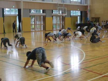 始業式後は、6年生が1学期から続けている”体育館雑巾がけ”を