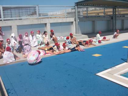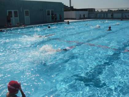 水に慣れている3年生は、スイスイとクロールや平泳ぎで