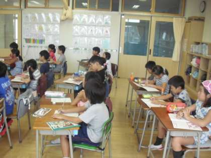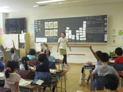 2年生の算数の時間、お手伝いごとの人数を調べ、同じ種類の人数を数えて、表に書き表す学習です。資料を分類、整理する方法や、簡単な表に分かりやすくまとめます。表にまとめ、表のよさについての気付きもワークシートにみんなでしっかりまとめていました・・・。
