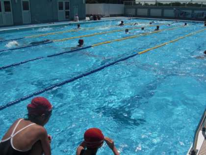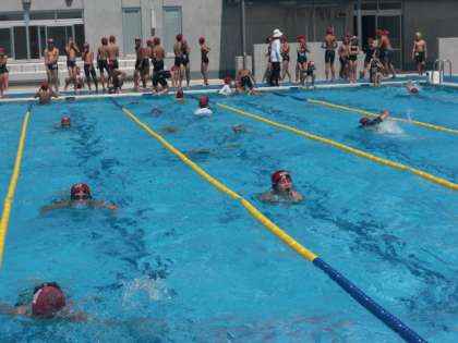 今日は、記録会で泳ぐ種目のタイム測りと、