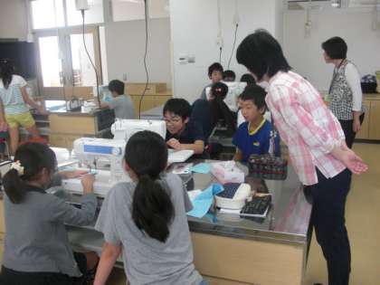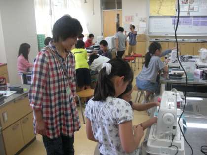 今日は3名の方が駆けつけてくださり、子どもたちのミシン縫いに