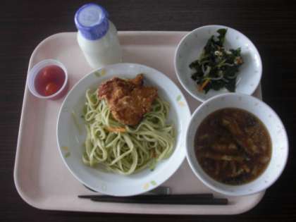 今日のうどんは、八丈島産のあしたば粉末を練り込んだもので、