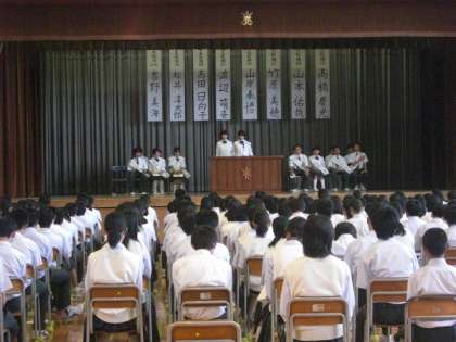 生徒全員で投票する前に、候補者は、推薦者を伴って