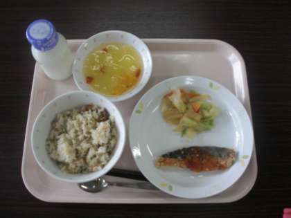 トンファン(炊き込みご飯)の中に、かまぼこを入れました。