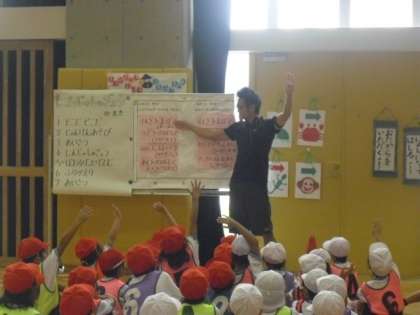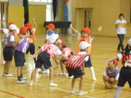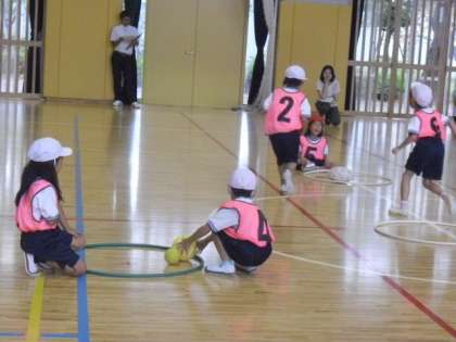 芦花小では、今年度、健康づくりや体力の向上に取り組む子どもの育成をめざして、体育授業研究を通して、指導法の研究をしています。今日の授業は楽しみながら運動に進んで取り組み、素早くボールを運ぶ工夫を見つける学習です。じゃんけん遊びなどを取り入れ、体をほぐします。その後は自分の輪にできるだけ早くボールを運ぶボールゲットゲームです。振り返りではどうしたらうまくいくのか、自分のみつけたコツを発表しました。