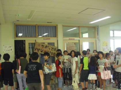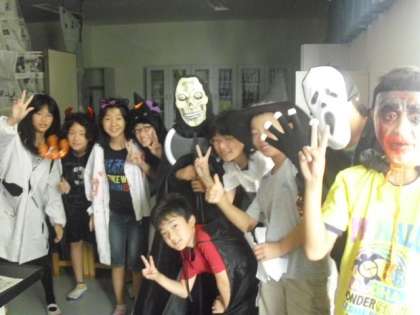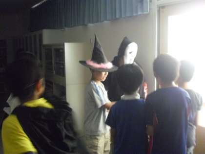 子どもたちが楽しみにしていた子どもまつりが始まりました。皆が列を作っている館をのぞくと、おばけが・・・最後に記念撮影になりました。