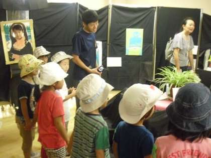 美術館のように絵が飾られたコーナーへ・・額縁に近づくと何やらモデルさん達の自己紹介が始まりました。今日訪れていた保育園のお友だちも「わぁ〜」と・・・発送が面白くなかなかのアイデア賞ものでした・・。