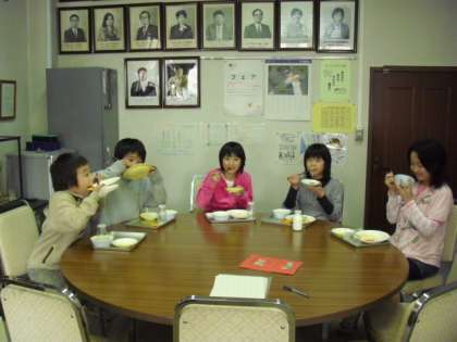 改築でセンター給食になるため、今年度は早く行ってきた6年生の校長室会食です。先週よりまだ行っていなかった6年3組が始まりました。