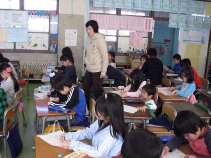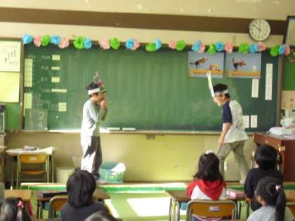 1年生は「はしのうえのおおかみ」の道徳の授業です。同じ教材を使っても担任によって構成が違い、全く違った授業になります。