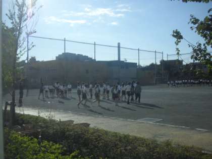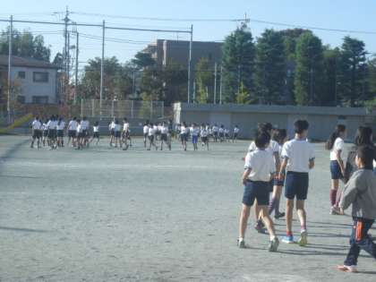 朝のひとこま (連合運動会、最後の練習)  6年