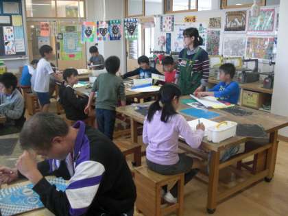 熱心に取り組んでいる中に、担任の村下先生も自然に溶け込んでいました。
